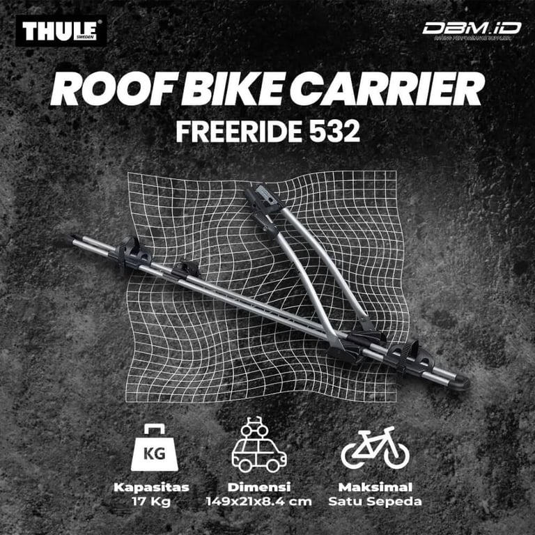 Roof bike carrier adalah alat yang dipasang pada atap mobil untuk membawa sepeda dengan posisi tegak. Cocok untuk berbagai jenis sepeda, alat ini menjaga akses penuh ke bagasi kendaraan dan memastikan sepeda terpasang dengan aman selama perjalanan.