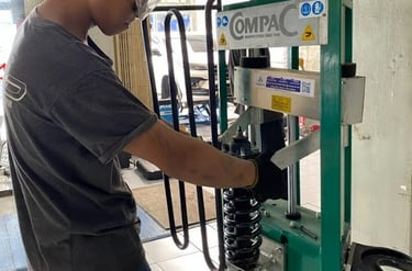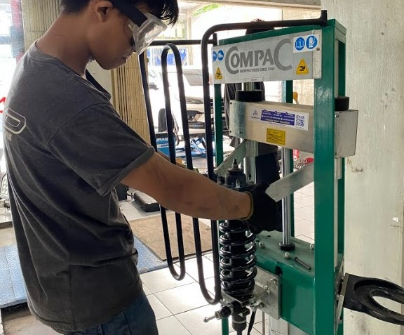 Pembongkaran spring/shock absorber menggunakan CompaC made in Denmark
