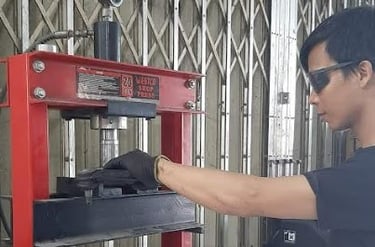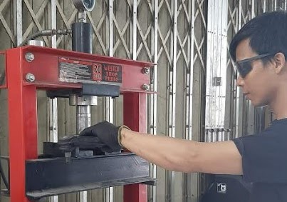 Penggantian velg/ban menggunakan Hydraulic Press