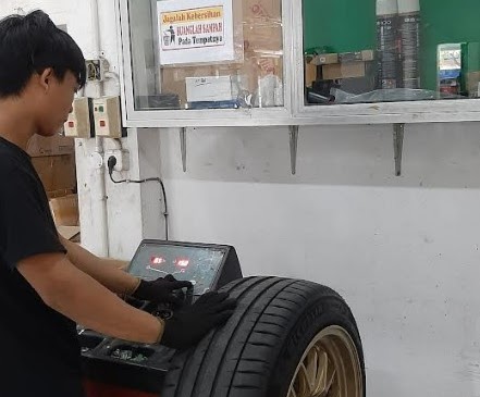 Tire balancing menggunakan Mesin Balancing